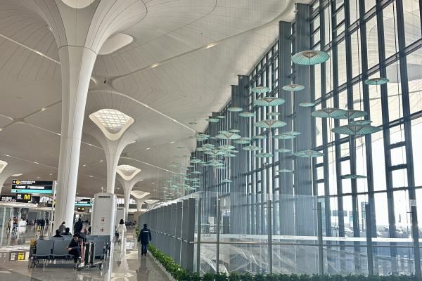 與傳統(tǒng)大型空間藝術(shù)展陳裝置不同的是,“煙雨江南”裝置不僅彰顯了地域文化風(fēng)采,同時還具備空防安全的效用。自T4投運以來,25號門兩側(cè)、T4國內(nèi)行李提取通道上空,因空間屬性特殊,存在一定的安全隱患。在民航浙江監(jiān)管局空防處多次現(xiàn)場調(diào)研和寶貴建議下,航站區(qū)中心立足區(qū)域管理中心職責(zé),主動作為、立題設(shè)項,組織多場內(nèi)部研討,提出了建造兼具安全、美觀功能性裝置的破題思路,在管控空防安全隱患、減少安保人員配置的同時,持續(xù)賦能T4文化屬性。