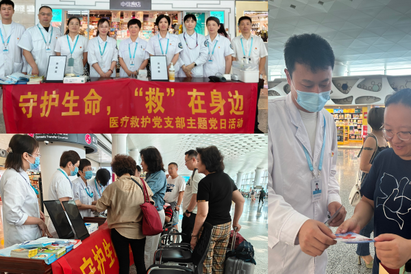 6月25日上午,醫(yī)療救護(hù)黨支部組織支部黨員在航站樓開展了“守護(hù)生命,‘救’在身邊”主題黨日活動(dòng),將專業(yè)急救知識(shí)與貼心義診服務(wù)送到廣大旅客身邊。