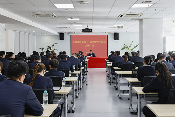 宣講會上,魏建根圍繞學(xué)習(xí)貫徹習(xí)近平總書記在黨的二十屆四中全會上的重要講話精神和中央“十五五”規(guī)劃《建議》,從深刻認(rèn)識全會的重大成果和重要意義,準(zhǔn)確把握“十五五”時期在基本實現(xiàn)社會主義現(xiàn)代化進程中的重要地位,深刻領(lǐng)會、全面理解“十五五”時期經(jīng)濟社會發(fā)展的指導(dǎo)方針和主要目標(biāo)、戰(zhàn)略任務(wù)和重大舉措,堅持和加強黨的全面領(lǐng)導(dǎo)等方面,對全會精神作了全面宣講和系統(tǒng)闡述,并結(jié)合習(xí)近平總書記考察浙江重要講話精神,對省委十五屆八次全會精神作了深入解讀。他指出,黨的二十屆四中全會是我們黨在向第二個百年奮斗目標(biāo)進軍新征程上舉行的一次十分重要的會議。集團上下要把學(xué)習(xí)貫徹四中全會和省委全會精神緊密結(jié)合起來,作為一項重大政治任務(wù)抓實抓細(xì),全面把握全會精神的核心要義和豐富內(nèi)涵,推動全會精神入腦入心,更好指導(dǎo)實踐、推動工作。