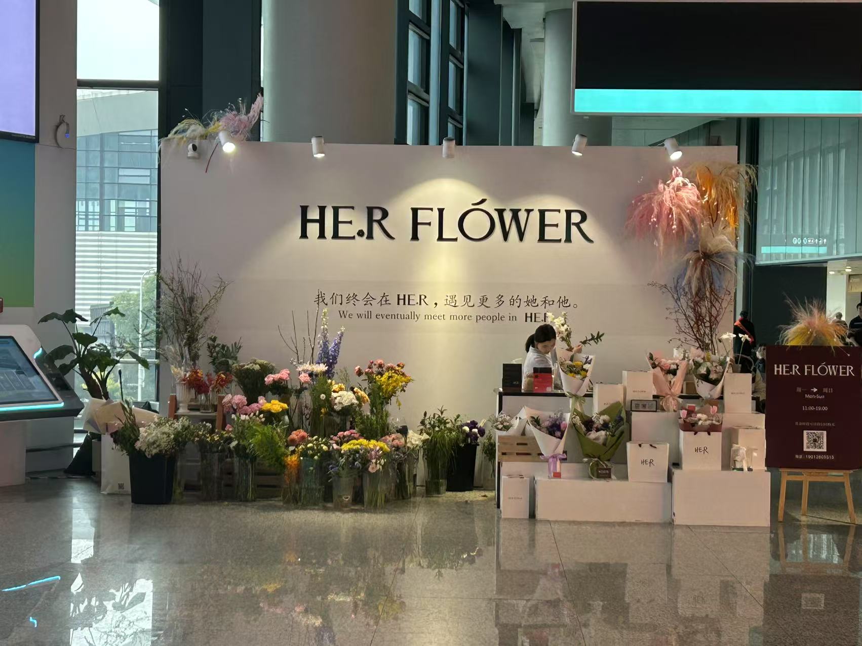 HER FLOWER營業(yè)時(shí)間 11:00-19:00位置 4號航站樓到達(dá)層國內(nèi)出口南側(cè)聯(lián)系方式 19012805515 -